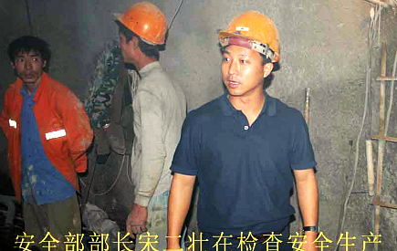 安全部部長宋二壯在檢查地下隧道的安全生產(chǎn)